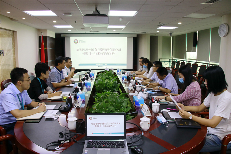8月19日,集團(tuán)公司黨委委員、副總經(jīng)理兼華西牙科黨委書記、董事長(zhǎng)羅永平在華西牙科公司會(huì)見阿壩州國(guó)有投資管理有限公司(以下簡(jiǎn)稱阿壩州國(guó)投公司)副總經(jīng)理杜鵬飛一行。