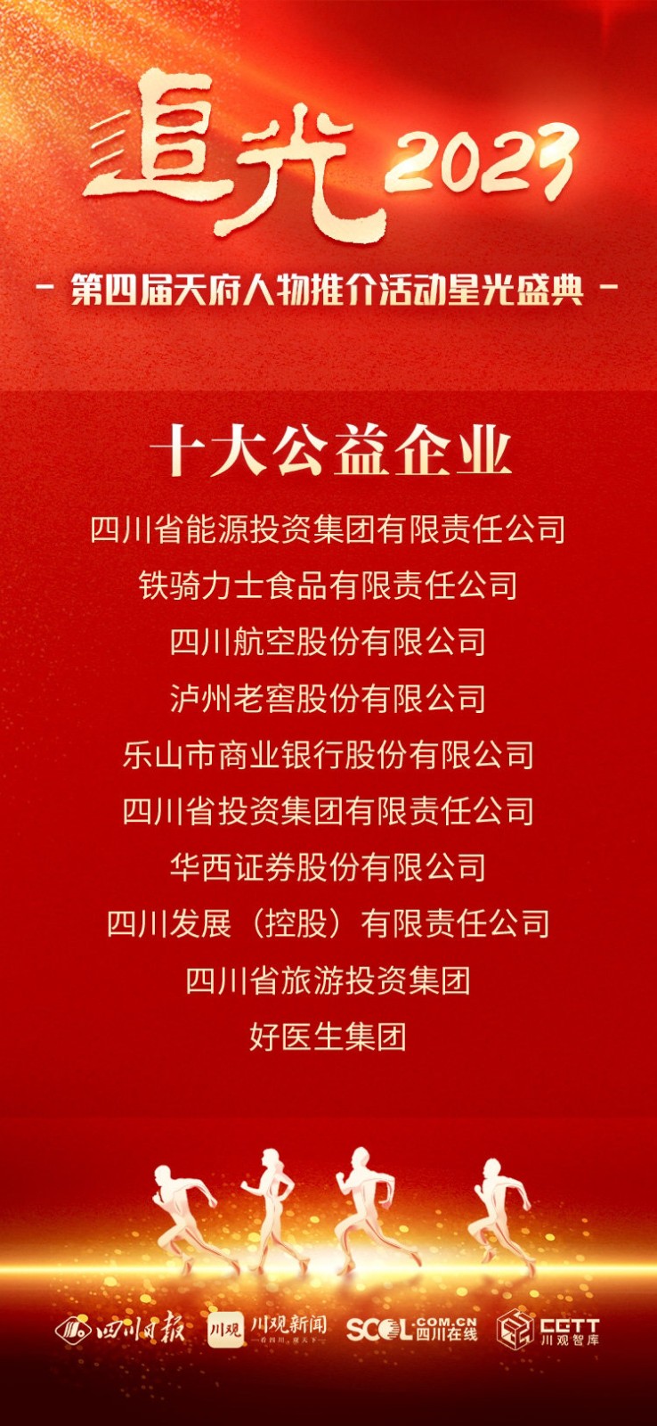 3月29日下午,在樂山舉行的追光2023·第四屆天府人物推介活動星光盛典上,川投集團獲評“四川十大公益企業(yè)”。集團領(lǐng)導朱莉代表川投集團參加典禮。