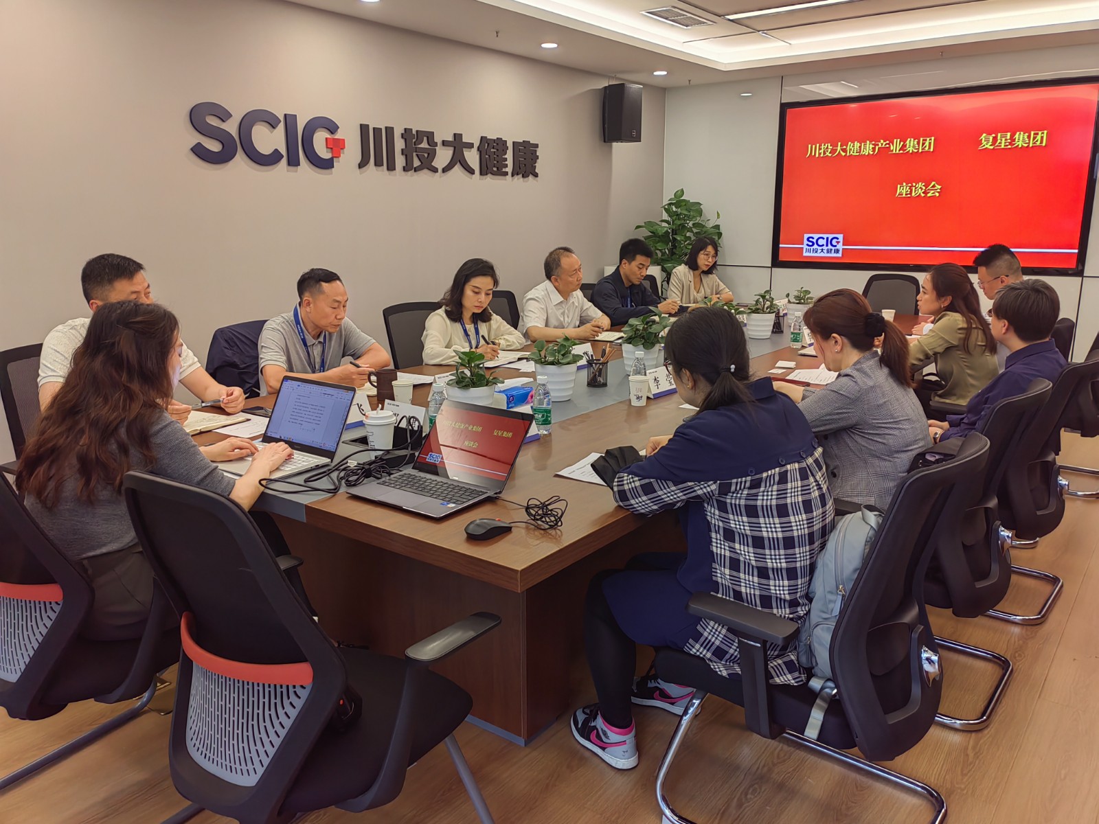 5月29日,復(fù)星集團(tuán)總裁助理、康養(yǎng)產(chǎn)業(yè)發(fā)展委員會(huì)主任紀(jì)瓊驍一行到訪川投大健康產(chǎn)業(yè)集團(tuán)開展交流座談。川投集團(tuán)黨委委員朱莉參加座談,川投大健康產(chǎn)業(yè)集團(tuán)黨委書記、董事長、總經(jīng)理魯洪斌主持會(huì)議。