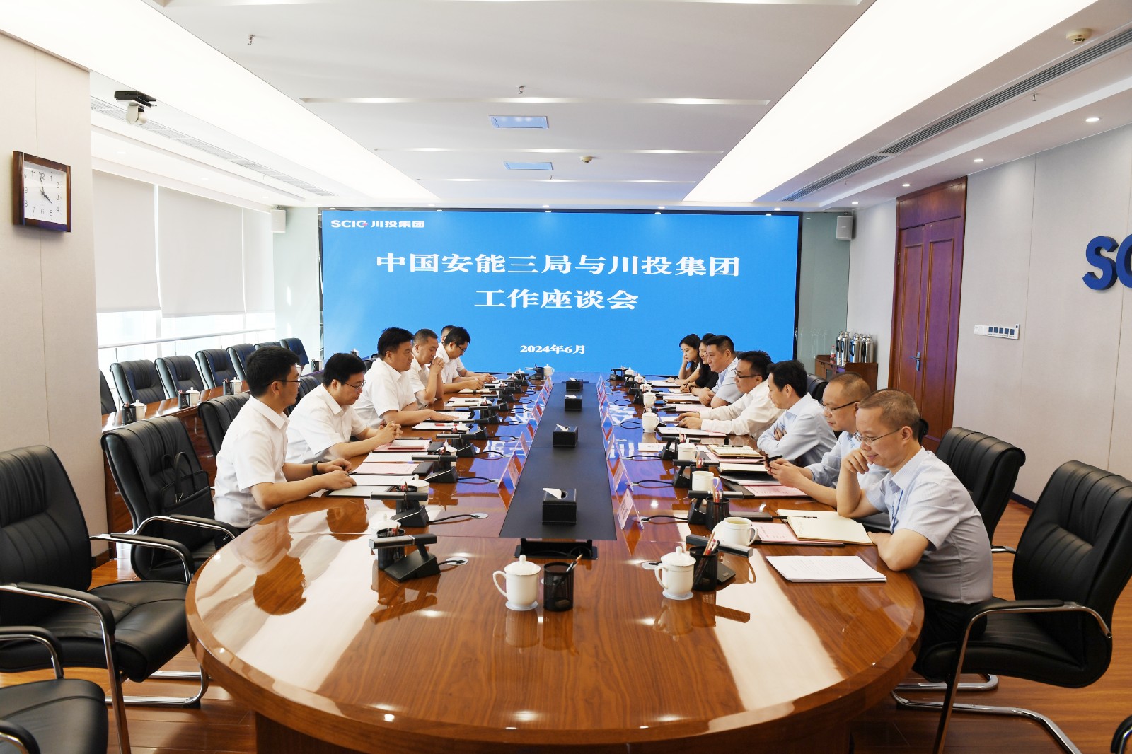 中國安能三局黨委副書記、紀(jì)委書記陳義明,黨委常委、總會(huì)計(jì)師董化龍,中國安能三局辦公室、市場(chǎng)開發(fā)部、成都分公司相關(guān)負(fù)責(zé)同志;集團(tuán)公司副總經(jīng)理張昊,財(cái)務(wù)總監(jiān)黃勁,集團(tuán)公司辦公室、經(jīng)營管理部,川投國際相關(guān)負(fù)責(zé)同志參加座談。