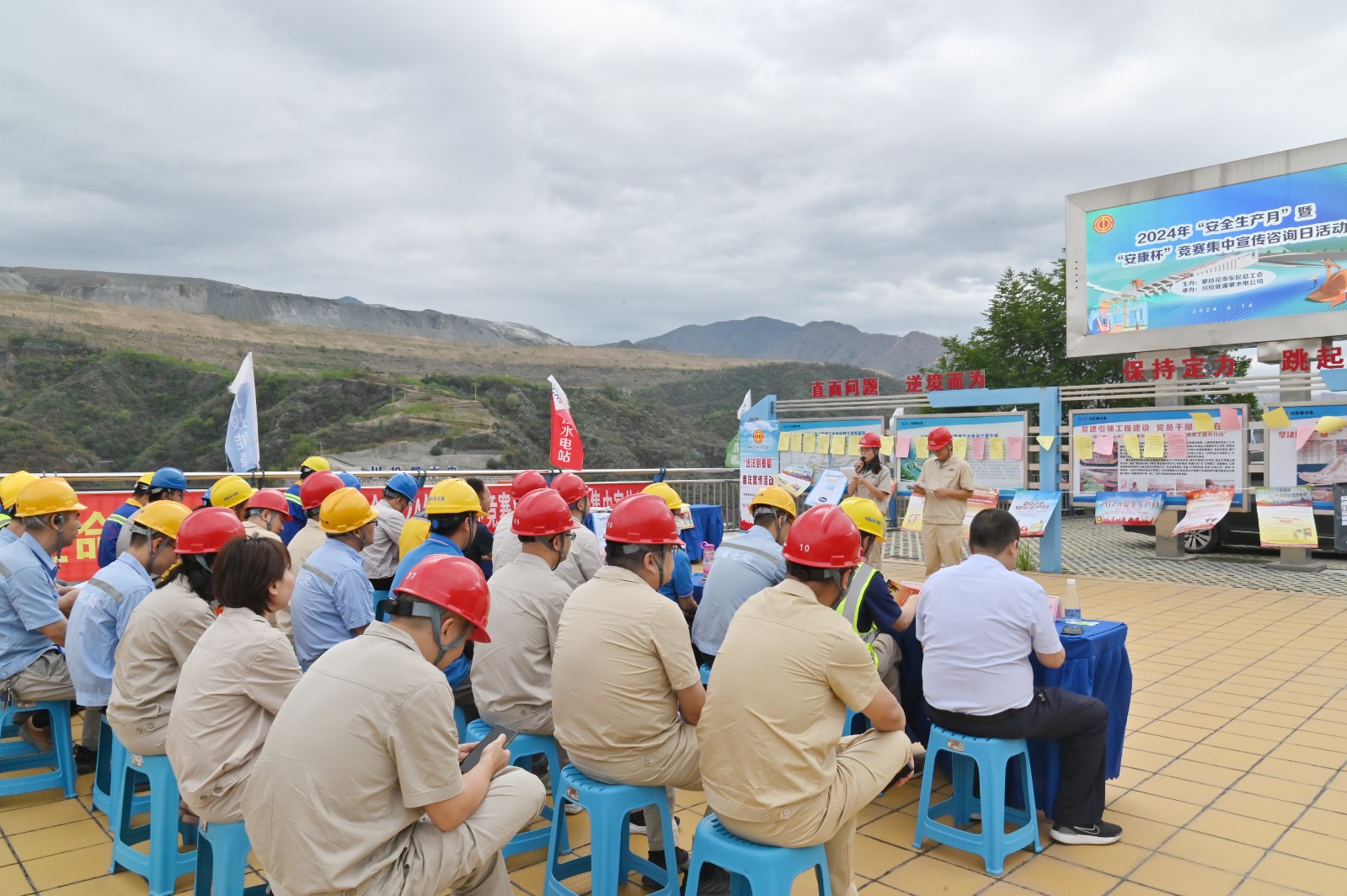 攀水電公司與攀枝花市東區(qū)總工會(huì)聯(lián)合開展2024年“安全生產(chǎn)月”暨“安康杯”競(jìng)賽集中宣傳咨詢主題黨日活動(dòng)。活動(dòng)組織觀看了安全生產(chǎn)警示教育片、開展了“安全生產(chǎn)月”和“安康杯競(jìng)賽”有獎(jiǎng)問答,并向現(xiàn)場(chǎng)黨員同志和參建單位代表分發(fā)了“安康杯”競(jìng)賽資料和“安全生產(chǎn)月”主題宣傳海報(bào)等資料共計(jì)1400余份。此次活動(dòng)覆蓋攀枝花市東區(qū)總工會(huì)、攀水電公司各支部黨員、團(tuán)青志愿者及參建單位代表共計(jì)50余人。