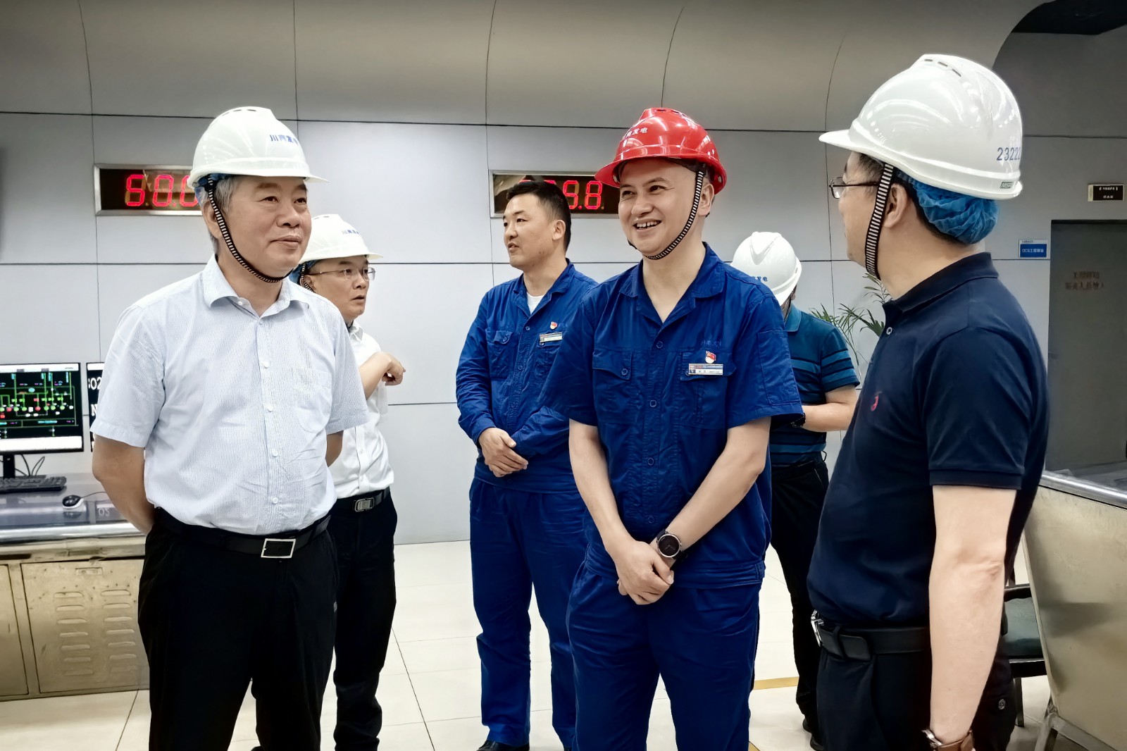 張俊利一行到達(dá)公司后,深入公司生產(chǎn)現(xiàn)場(chǎng)了解迎峰度夏電力保供相關(guān)工作開展情況。在集中控制室,陳嵩向張俊利一行介紹了公司安全生產(chǎn)、環(huán)境保護(hù)、電力電煤保供、經(jīng)營發(fā)展等工作情況,并對(duì)國網(wǎng)四川省電力公司長期以來給予公司的支持和幫助表示由衷感謝。陳嵩表示,目前公司機(jī)組運(yùn)行狀態(tài)良好、電煤儲(chǔ)備充足、安全生產(chǎn)形勢(shì)平穩(wěn),正以“滿血”狀態(tài)投入到迎峰度夏電力保供工作。