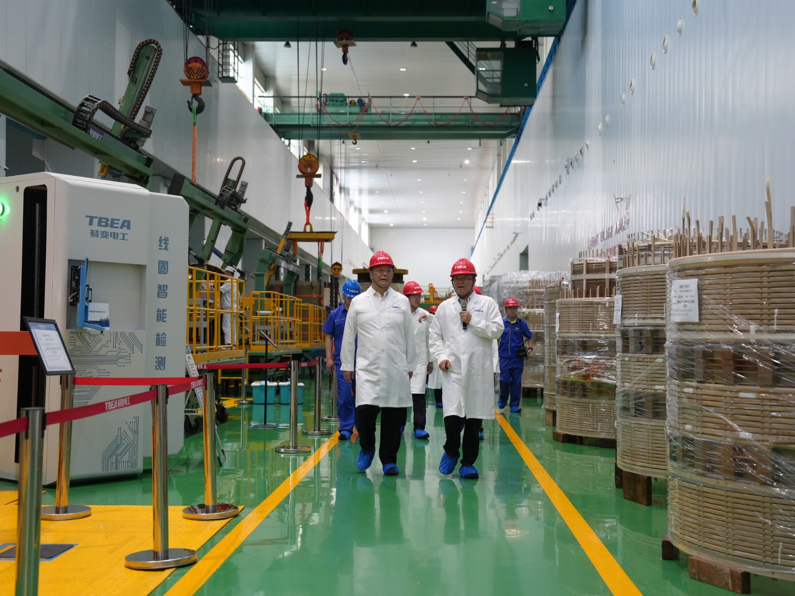 調(diào)研期間,李文志一行參加了銀江水電站主變壓器下線儀式,參觀了東方電氣新能源高端裝備制造基地。