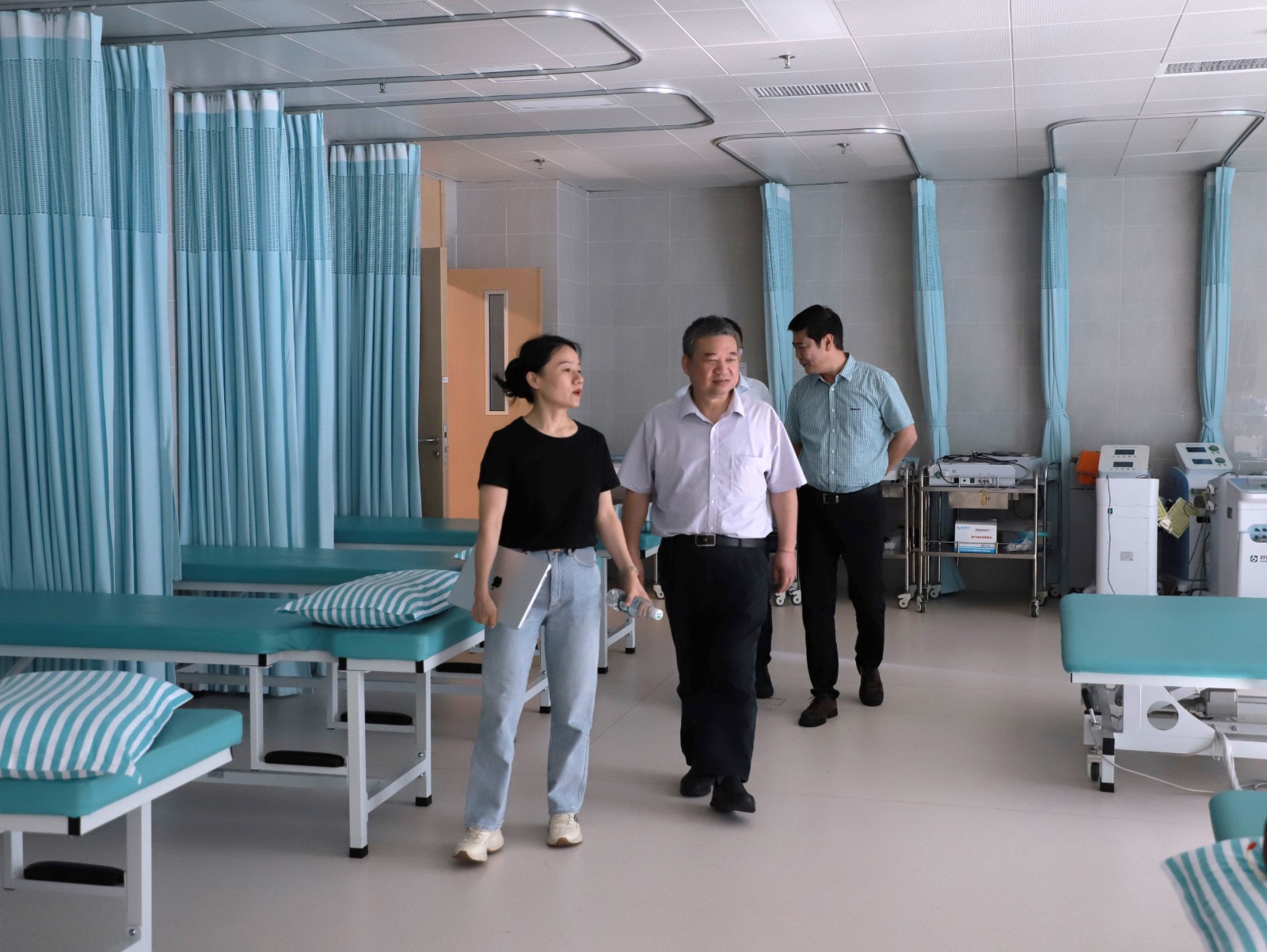 在現(xiàn)場,傅啟華一行先后調(diào)研走訪醫(yī)院門診大廳、放射影像中心、康復(fù)醫(yī)學(xué)科及住院部等,實(shí)地了解了醫(yī)院運(yùn)營情況、省醫(yī)院托管支持情況,對去醫(yī)院化的設(shè)計(jì)理念、先進(jìn)的硬件設(shè)備給予了充分肯定。