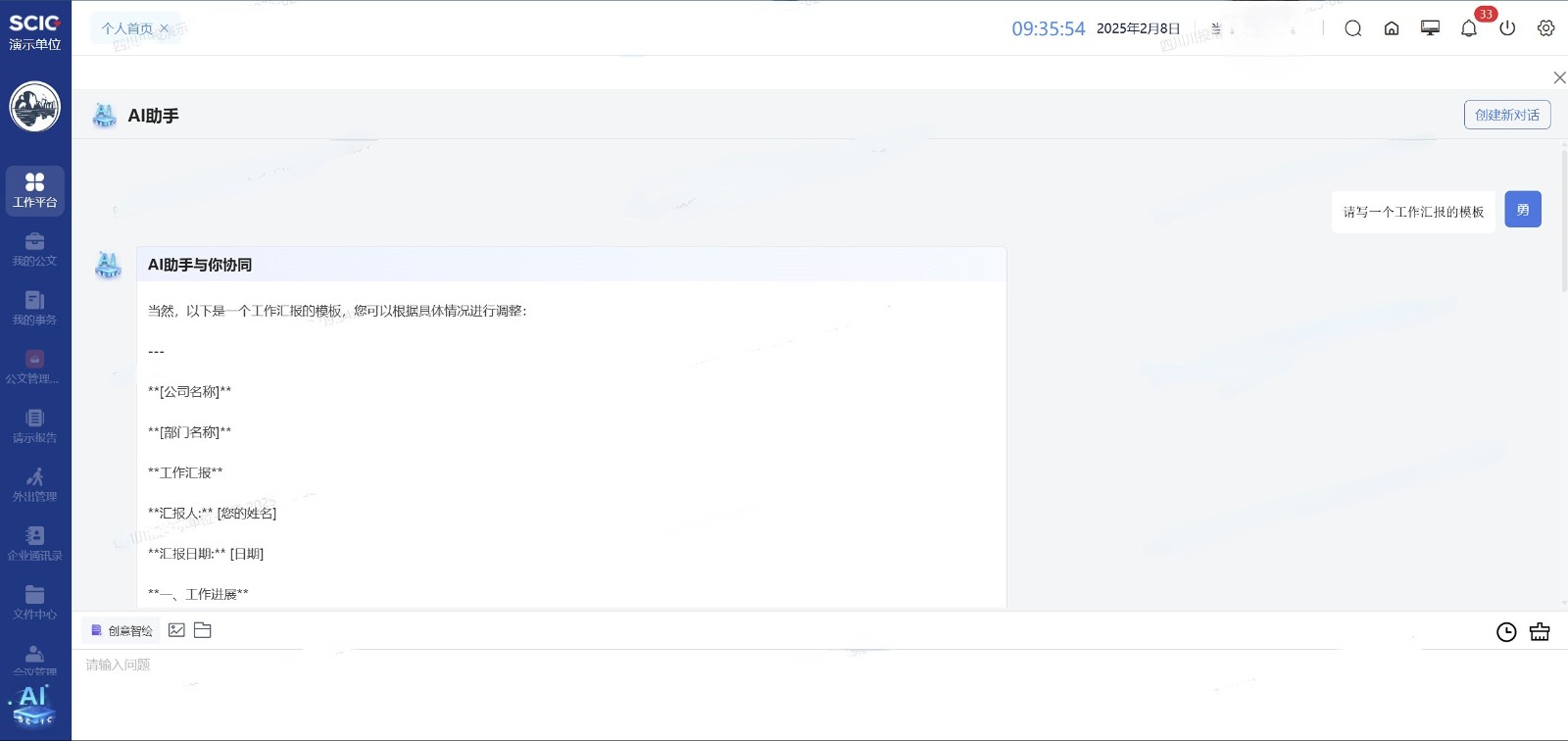 此外,川投數(shù)科還在平臺(tái)建設(shè)中,展現(xiàn)了強(qiáng)大的自主研發(fā)能力。該信創(chuàng)平臺(tái)集成了前沿的AI大模型、自研的信創(chuàng)技術(shù)架構(gòu)、高度自主可控的文檔管理中心以及強(qiáng)大的數(shù)據(jù)中臺(tái)等一系列創(chuàng)新產(chǎn)品。這些創(chuàng)新功能、架構(gòu)不僅提升了平臺(tái)的性能和安全性,還為用戶帶來(lái)了更加智能化、便捷化的使用體驗(yàn)。例如,AI智能問(wèn)答和AI文案編寫功能,能幫助用戶快速獲取信息和高效完成文檔撰寫,極大提高了工作效率,助力央國(guó)企高質(zhì)量發(fā)展。