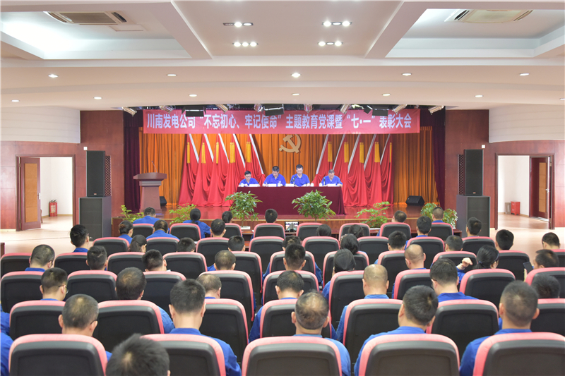 為深入推進(jìn)“不忘初心、牢記使命”主題教育的開(kāi)展,回顧中國(guó)共產(chǎn)黨成立98年來(lái)的光輝歷程,認(rèn)真學(xué)習(xí)黨的十九大精神和習(xí)總書(shū)記重要講話(huà)精神,更好地發(fā)揮黨支部的戰(zhàn)斗堡壘作用和黨員的先鋒模范作用,6月26日,川南發(fā)電公司黨委舉辦“不忘初心、牢記使命”專(zhuān)題黨課并隆重召開(kāi)了七?一表彰大會(huì),公司黨委書(shū)記、董事長(zhǎng)李勝章以“以?shī)^斗踐行初心使命,彰顯新時(shí)代川南發(fā)電人的擔(dān)當(dāng)”為題,給大家上了一堂生動(dòng)的黨課。大會(huì)由公司黨委副書(shū)記黃松同志主持,公司領(lǐng)導(dǎo)及黨員共計(jì)80余人參加了會(huì)議。
